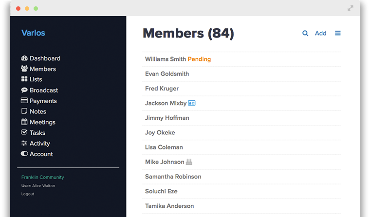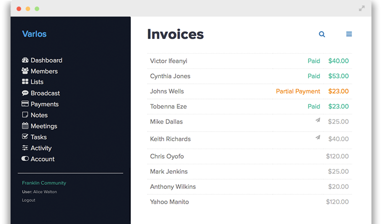 Using Vozi has been great! We can quickly broadcast messages to all or select members. We are no longer using spreadsheets to keep track of members and contributions! It is super easy to charge credit cards, record checks and cash payments. I can quickly email payment reminders or record member payments during a meeting. The support team is responsive with any questions we’ve had. Love, love, love!